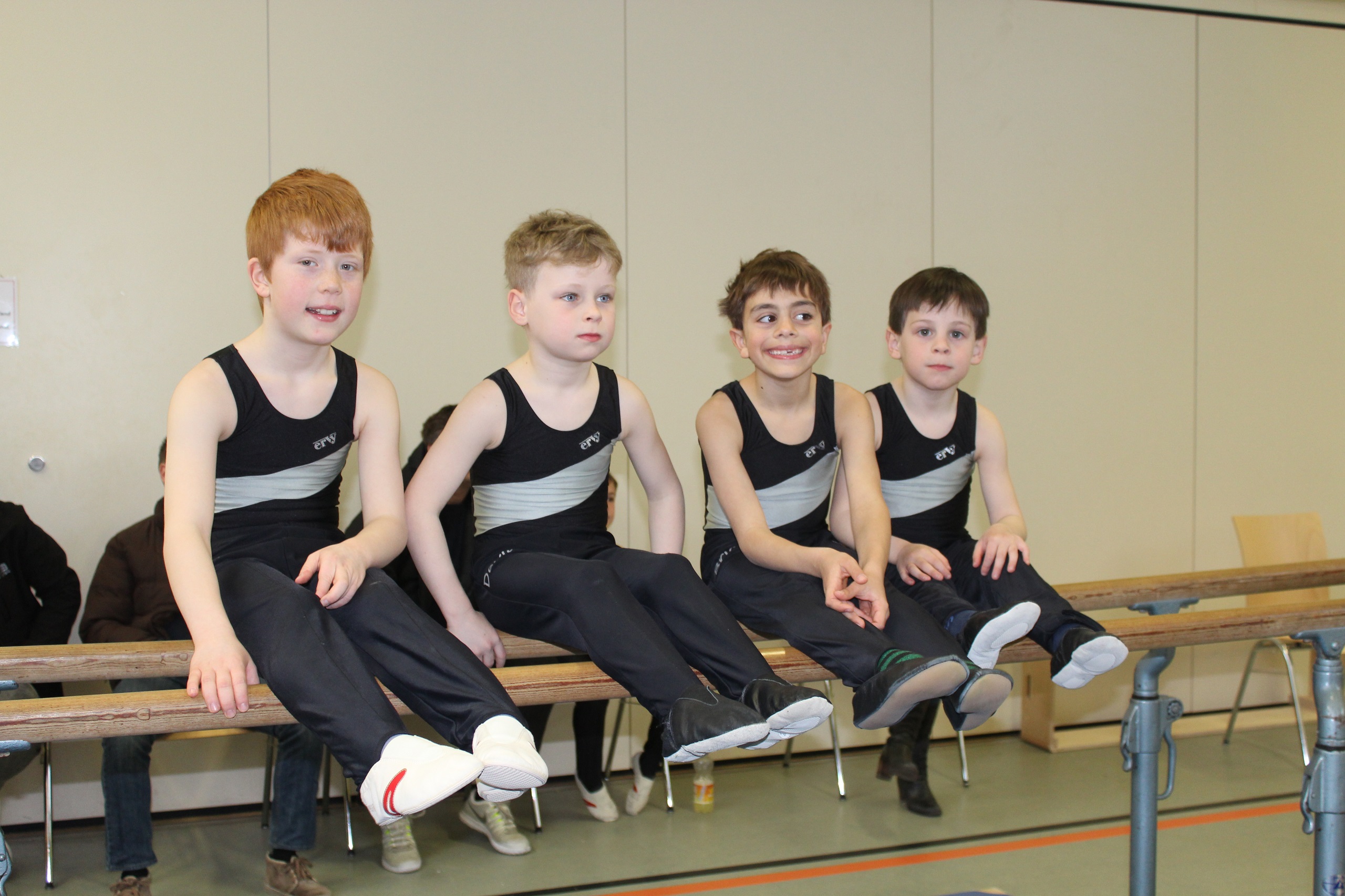 Vor ihrem ersten großen Wettkampf waren alle voller Vorfreude. Das Einturnen verlief gut, sodass die Turner sicher in den Wettkampf starten konnten.