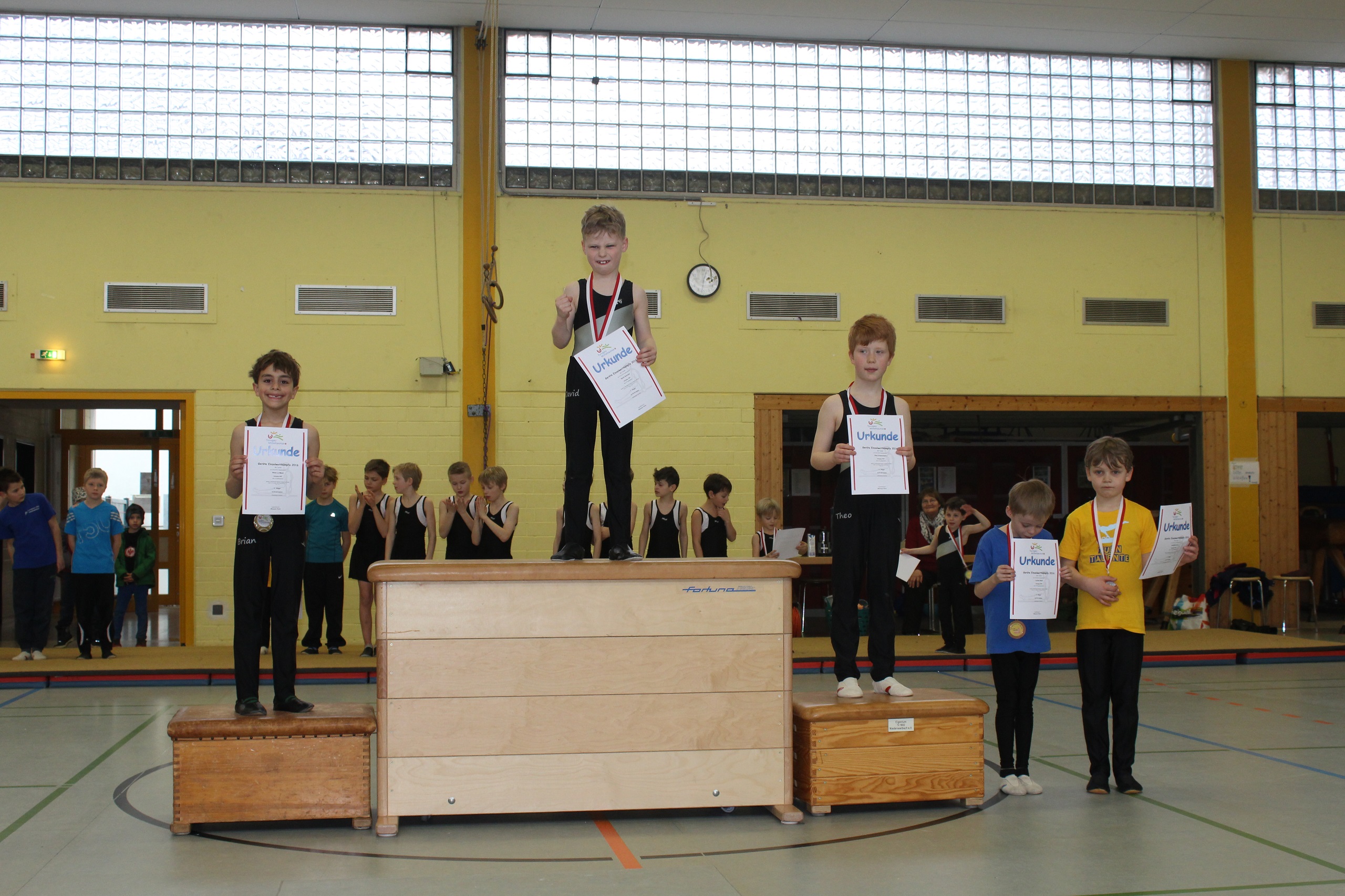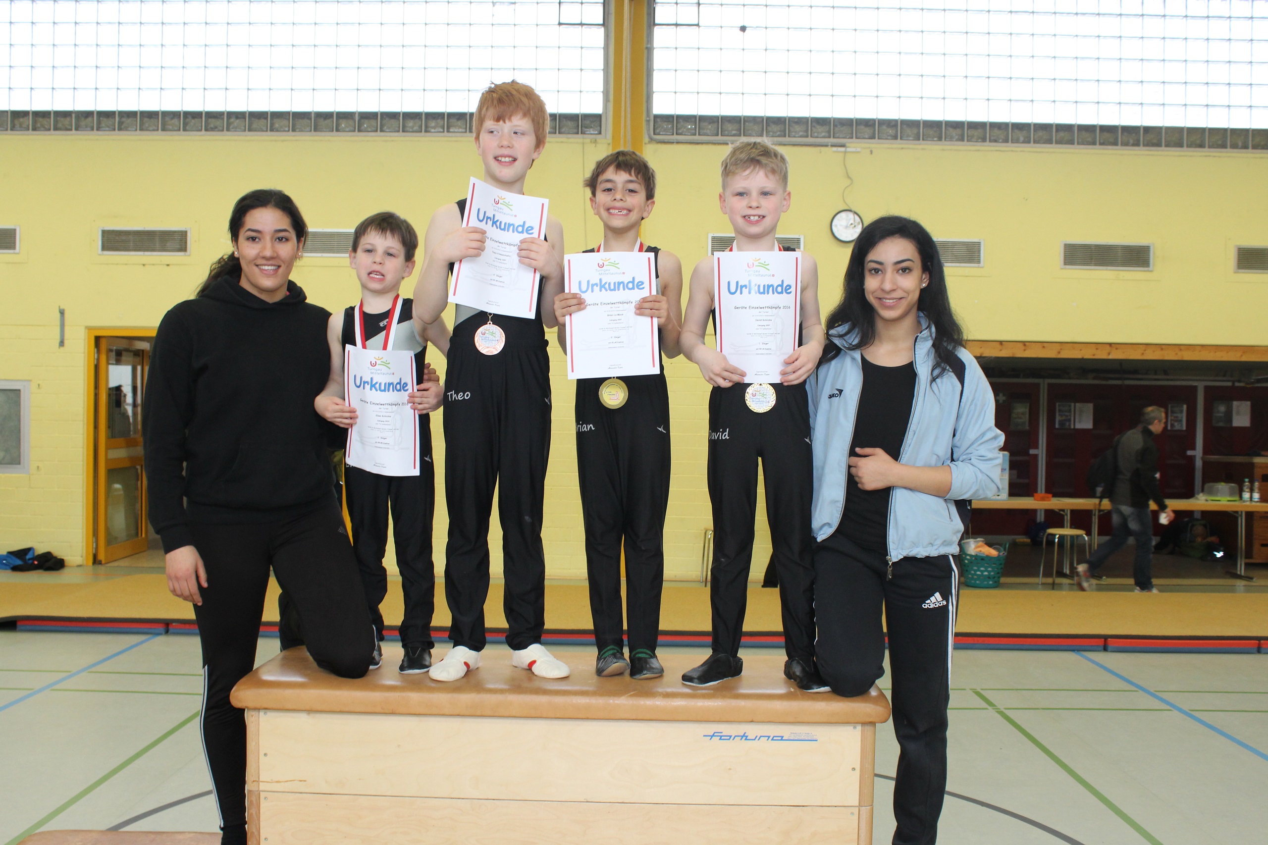 Am 19. März 2016 fanden die Geräte- EinzelWettkämpfe der Turner des Turngau Mitteltaunus in Niederseelbach statt. Für den Turnverein Delkenheim gingen Theo Friesenhahn, David Schrohe, Brian Le Mauk und zum ersten Mal Elias Schrohe an den Start.