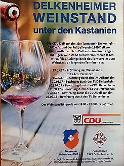 Gemeinsam mit der CDU Delkenheim, dem Fußballverein FV Delkenheim eröffnet der Turnverein Delkenheim einen Weinstand unter den Kastanien vor der Vereinsturnhalle.