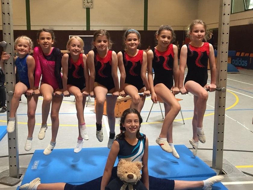 Geturnt wurde an drei Geräten, die jeder selbst wählen konnte. Jessika LeMauk war als älteste Turnerin gestartet. Sie turnte souverän ihre Übungen an den ungewohnten Geräten. Besonders mit ihrer Balkenübung begeisterte sie die Zuschauer. Nicht viel abzuziehen hatten die Kampfrichter bei ihrer Übung am Boden (15,45P. von 16). Laureen zeigte eine schöne Grätsche am Bock. Im Vergleich zu den letzten Wettkämpfen verbesserte sie sich enorm am Reck und bekam dafür 12,10 Punkte. Einen sehr guten Wettkampf turnte Madita. Mit einem fast perfekten Handstandüberschlag auf den Mattenberg holte sie viele Punkte (14,60P. von 15). Ihre gute Technik zeigte sich bei ihrer gespannten Reckübung und ordentlichen Übung am Boden. Auch Luisa konnte sich in den letzten Wochen verbessern. Ihr gelang der Handstandüberschlag auf den Mattenberg das erste Mal in einem Wettkampf. Boden und Balken waren ihre weiteren Geräte. Im Wettkampf Jhg. 2008 erturnte sich Sarah S. die höchste Wertung am Balken. Auch am Sprung und Boden erhielt sie hohe Wertungen aufgrund ihrer guten Haltung. Eda zeigte, nachdem sie sich überwunden hatte, eine schöne Grätsche am Bock. An ihren weiteren Geräten konnte sie bereits die höchste Schwierigkeit turnen. Für Sarah K. startete der Wettkampf mit einer gespannten Reckübung. Leider musste sie am Balken zweimal absteigen. Diese Erfahrung wird sie dafür in den nächsten Wettkämpfen weiter bringen. Ihren ersten Wettkampf für den TV Delkenheim machte Lara Graeser. Ihr besonderes Können zeigte sie am Boden. Mit 13,60P von 14 war sie die Beste in ihrer Altersklasse an diesem Gerät. Auch die neu erlernte Grätsche am Bock meisterte sie souverän. Ein Sturz am Balken kostete sie eine noch bessere Platzierung. Vom Nachwuchs des TVD nahmen Lea Koch und Maya Moukala zum zweiten Mal und Sbartha Gourie zum ersten Mal an einem Wettkampf erfolgreich teil. Maya und Lea steigerten sich in ihrer Leistung und turnten diesmal schon höhere Übungen als im März. Sbartha ist erst seit ein paar Wochen dabei und erhielt schon die zweit beste Wertung in ihrem Wettkampf am Reck. Sie turnte bereits die P5 und erhielt dafür 13,70P. Leas bestes Gerät war der Sprung, wo sie 12,30P. bekam. Auch für Maya war dies das beste Gerät. Für ihre schöne Grätsche am Bock erhielt sie 12,40P.