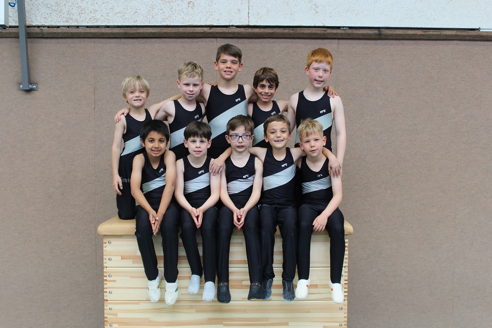 Im Jahrgang 2006 und jünger gingen Theo Friesenhahn, Brian Le Mauk, David Schrohe, Jannis Berker und Philipp Hohmann an den Start. Mit neuen und schwierigeren Übungen zeigten sich am ersten Wettkampftag noch einige Schwachstellen, welche die Turner aber in der zweiten Runde deutlich steigern konnten. Die Tageshöchstwertung der Mannschaft erhielt Theo mit einer schönen Reckübung und 14,25/15 Punkten, dicht gefolgt von David mit 14,20. Für Brian lief es in der zweiten Gaurunde besonders gut. Er konnte viele schöne Übungen zeigen. Besonders zufrieden waren seine Trainerinnen mit der Leistung an den Ringen, die er im Training zielstrebig perfektionierte. Seine höchste Wertung erhielt er am Sprungtisch (13,75 Punkte). Jannis konnte in diesem Wettkampf auch an drei Geräten mit der Übung P5 auftrumpfen. Seine besten Übungen turnte er am Sprung (12,80/14) und am Reck (13,45/15). Philipp startete nur in der ersten Runde, doch auch hier bewies er sich mit einem starken Sprung und einer schönen Bodenübung.