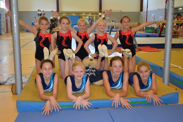 Im Qualifikationswettkampf Pflichtstufe 5 turnten Marie Blumrich, Mira Ross, Madita Zentgraf, Lina Milau und Ina Steffens, die nun in der zweiten Runde durch Clara Füssel ersetzt wurde.  Die Mädchen starteten am Stufenbarren. Dort zeigte Madita ihr Können. Durch ihre gute Technik erturnte sie 13.65 von 15 Punkte. Es war die zweitbeste Wertung aller Turnerinnen an diesem Gerät. Am Schwebebalken schaffte es wieder einmal Lina zu überzeugen. Mit Spannung und Eleganz präsentierte sie ihre Übung mit Standwaage, Sprüngen und Radwende als Abgang. Mit 13.15 wurde auch sie zweite an diesem Gerät. Es folgte der Boden, hier turnte Clara ihre eigene höchste Wertung und auch die der Mannschaft. Insgesamt war dies Platz vier. Handstandabrollen, Rad und Flugrolle zeigte sie mit Schwung und Ausstrahlung. Das letzte Gerät gewann Mira innerhalb der Mannschaft mit 13.3 Punkten, auch dies war insgesamt Platz zwei. Mira sprang mit viel Power am Mattenberg den Überschlag. Noch kurz vor dem Wettkampf hatte sie ihren Anlauf gesteigert, was sich gleich durch tolle Punkte bewerte. Souverän turnte Marie an allen vier Geräten, wodurch sie insgesamt die höchste Wertung der Mannschaft erreichte. Ohne einen Sturz vom Balken, mit tollen Sprüngen am Mattenberg und schönen Übungen am Barren und Boden belegt die Mannschaft in dieser Runde den ersten Platz. Insgesamt mit der ersten Runde wurde es Platz zwei. Nun können sie ihr Können an den Bezirkswettkämpfen am 24.9. erneut beweisen.