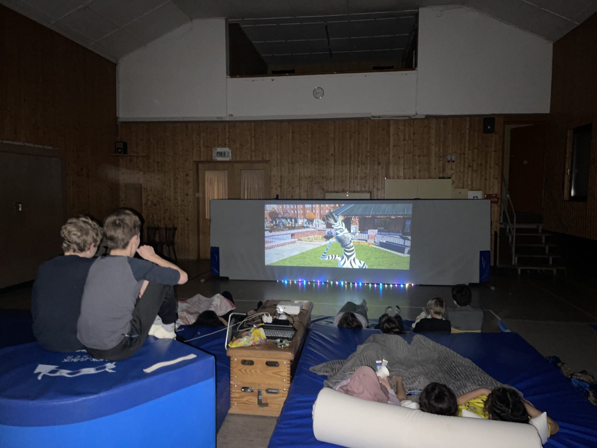 Gemeinsam mit der Leistungsturngruppe der Jungen und der Freien Turngruppe stand am 25.11.2023 nach langer Zeit wieder eine Übernachtung in der Turnhalle an. Neben dem Training und vielen Spielen konnten sich die Kinder zwischendurch mit der bestellten Pizza und ein paar Snacks stärken. Den Abend schlossen wir mit gemütlichem Kinofeeling mit einen Film, den wir auf die Matten des Schwebebalkens projizierten, ab. Sowohl wir Trainerinnen als auch die Kinder hatten eine Menge Spaß : )